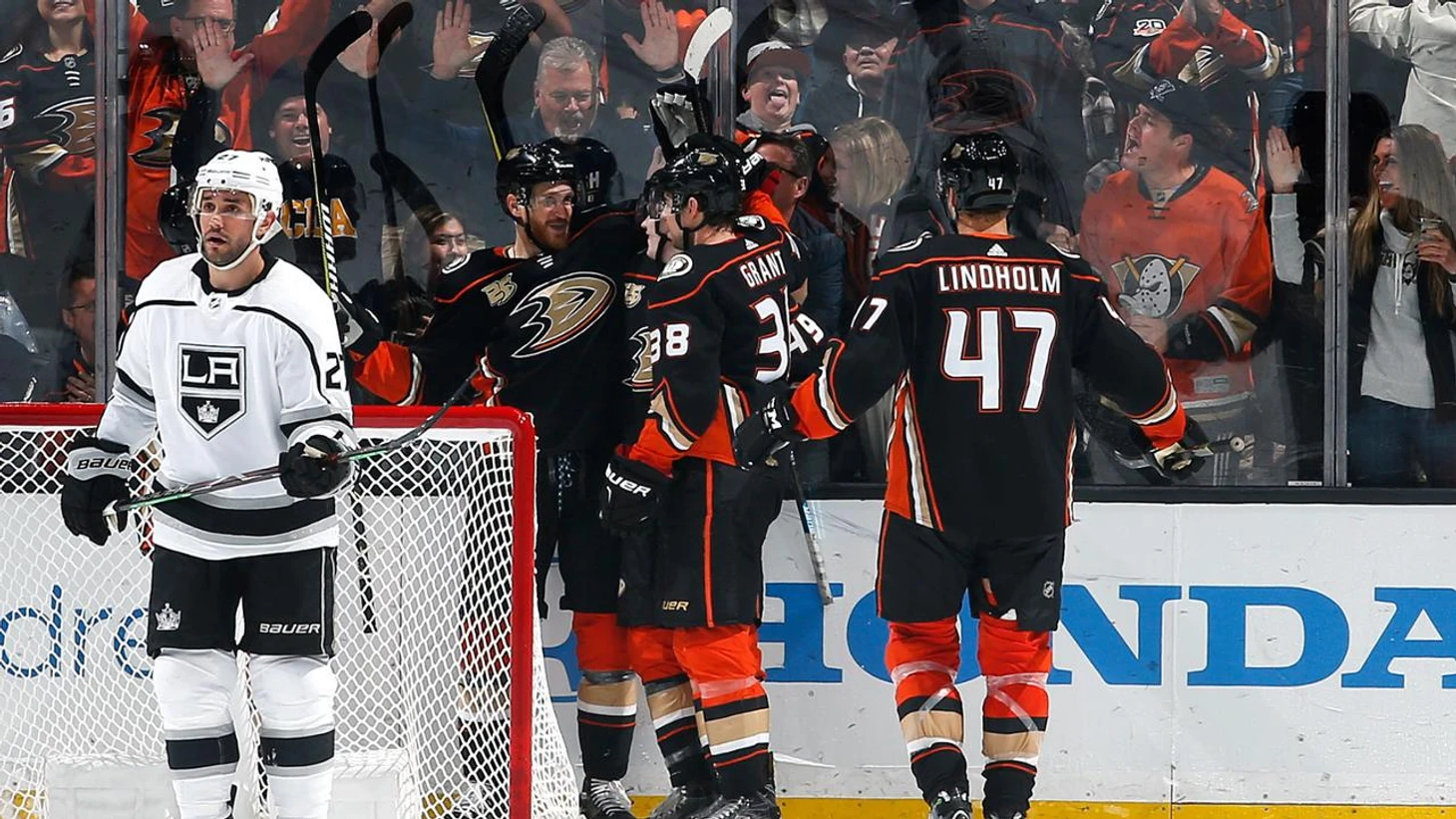 "Анахайм Дакс"-"Лос-Анджелес Кингз" 5:2.Якоб Силфверберг набрал 2 очка (1+1),Макс Джонс и Кэм Фаулер отдали по 2 результативные передачи,Джон Гибсон отразил 44 броска.В конце матча Райан Гецлаф и Николай Ричи повздорили с Кайлом Клиффордом и Адрианом Кемпе."Утки" выиграли 3 матч подряд.