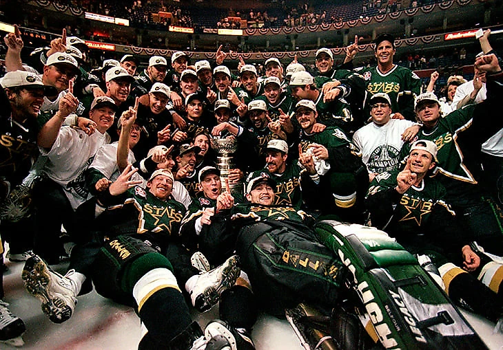 Фантастическая и по именам (Белфор, Зубов, Д.Хэтчер, Сидор, Матвичак, Чемберс, Людвиг плюс обладатели четырех «Селке Трофи» Карбонно и Лехтинен), и по организации (для Хичкока командная игра в защите важнее всего). «Старс» чуть не установили рекорд НХЛ по пропущенным шайбам в регулярке (не хватило двух), а в плей-офф только в шести матчах из 23 по их воротам бросили больше 30 раз. Четыре этих встречи завершались в овертаймах.