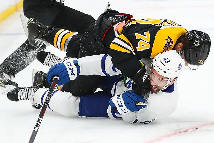 Самым заметным игроков на площадке стал Джейк Дебраск из «Бостона» – сначала он въехал в колено Назему Кадри, а судьи оставили этот эпизод без внимания:
