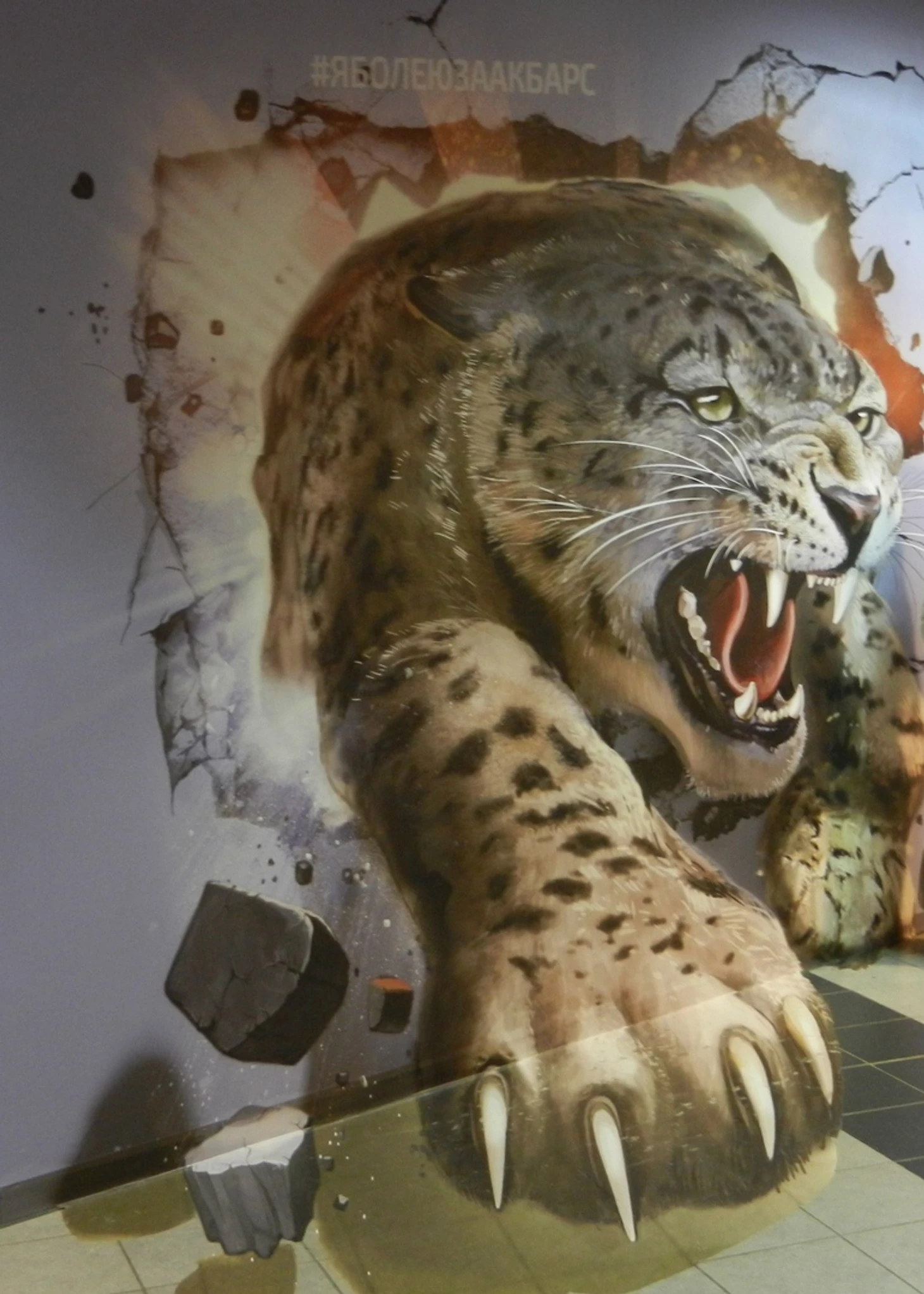 Не скажу точно в каком году – я не из Казани и на родной арене была всего два раза – в фойе Татнефти повесили большую 3D картинку с барсом.