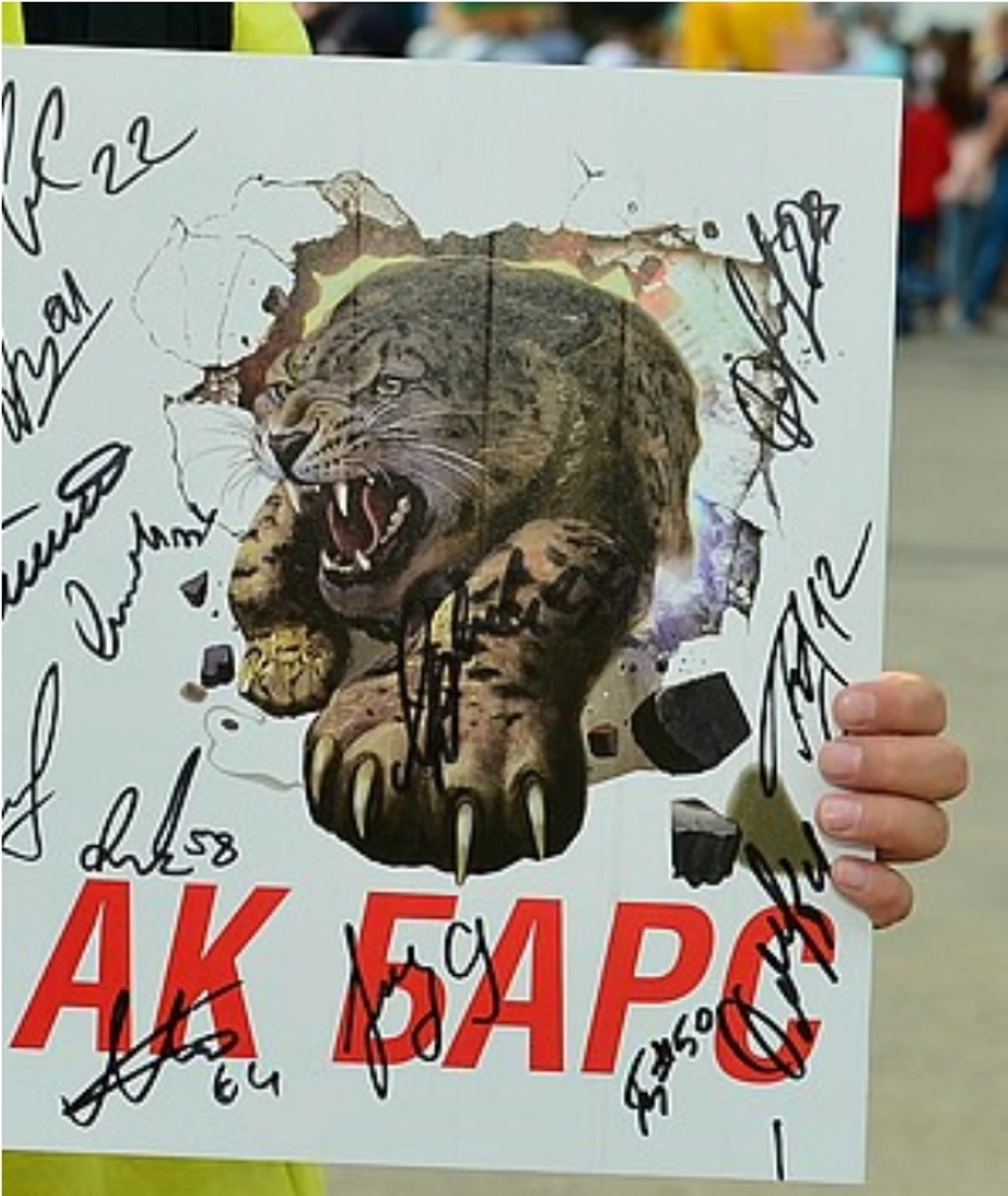 Этот же образ использовали на плакате для автограф-сессии на товарищеском матче «Нефтяник» – «Ак Барс». Просто посмотрите, как это выглядит.