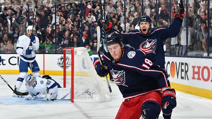 "Колумбус Блю Джакетс"-"Тампа-Бэй Лайтнинг" 7:3.Пьер-Люк Дюбуа набрал 3 очка (1+2),Александр Тексье забросил 2 шайбы,Оливер Бьёркстранд с Мэттом Дюшеном и Сетом Джонсом набрали по 2 очка (1+1),Скотт Харрингтон отдал 2 результативные передачи,Артемий Панарин забросил одну шайбу,Сергей Бобровский отразил 30 бросков.У гостей Стивен Стэмкос набрал 2 очка (1+1),Никита Кучеров отдал 2 результативные передачи."Синие жакеты" выиграли серию 4-0.