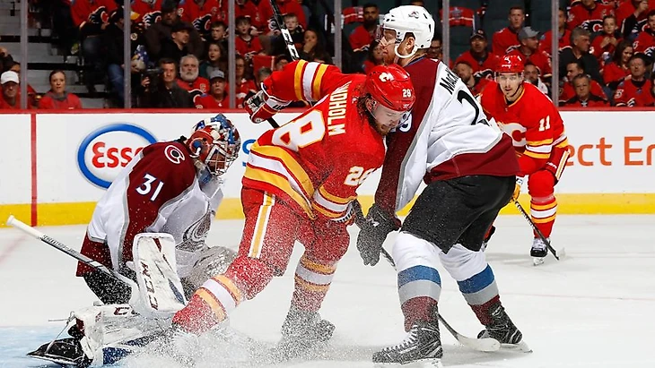 "Калгари Флэймз"-"Колорадо Эвеланш" 1:5.Колин Уилсон и Микко Рантанен набрали по 3 очка (2+1),Натан Маккиннон и Тайсон Бэрри отдали по 3 результативные передачи,Филипп Грубауэр отразил 28 бросков."Лавины" выиграли серию 4-1.
