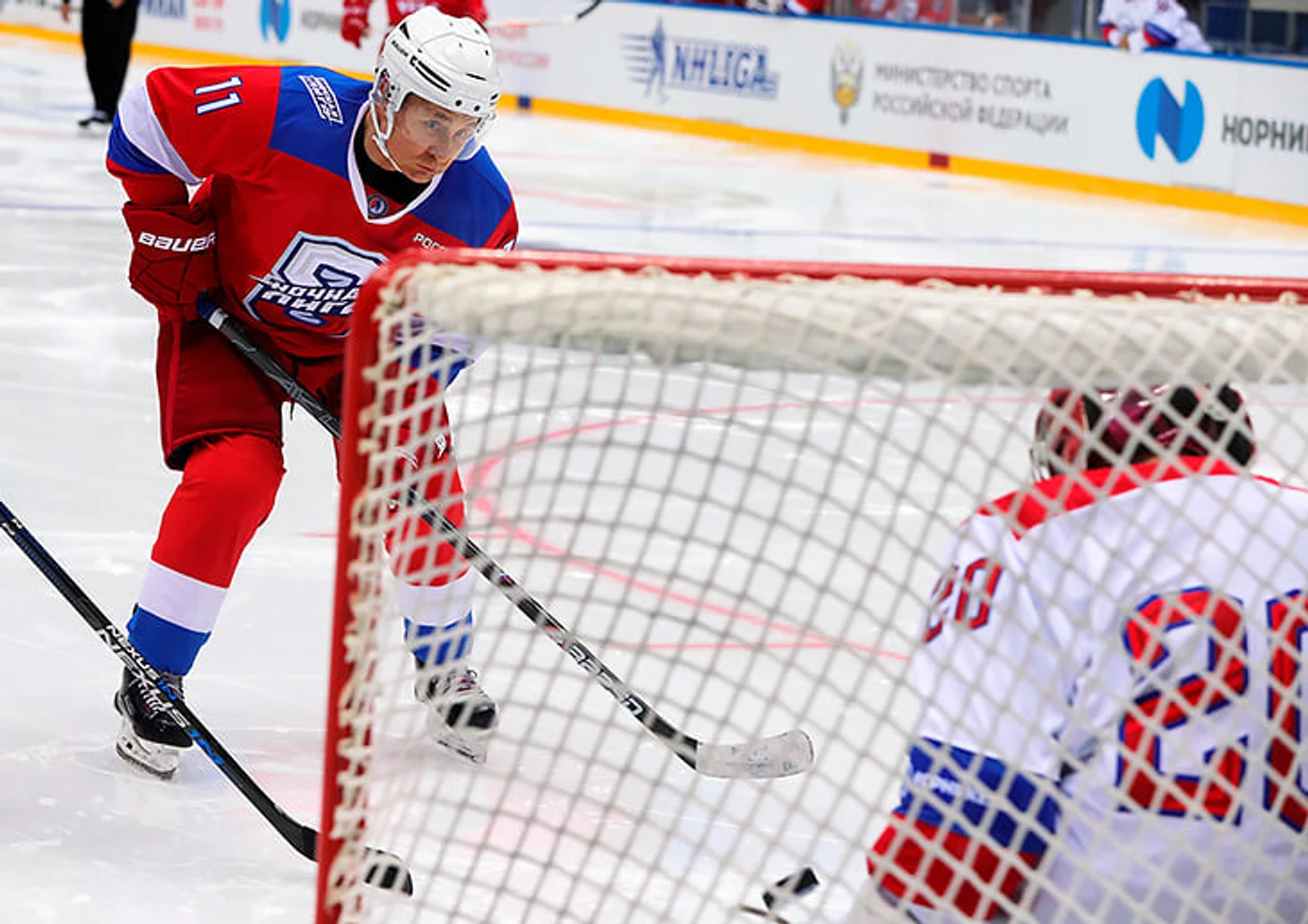 Путин забросил 8 шайб в матче, а потом упал на ковер