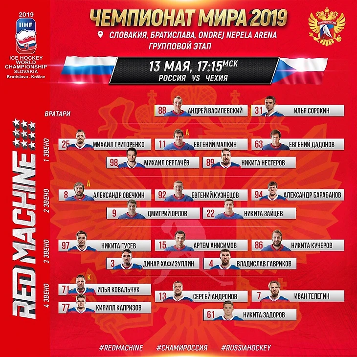 «Зимний стадион Ондрея Непелы» в Братиславе принимал матч лидеров группы B — сборных России и Чехии. Для подопечных Ильи Воробьёва наступил первый серьёзный экзамен, так как по играм с Норвегией и Австрией делать выводы о команде необъективно.