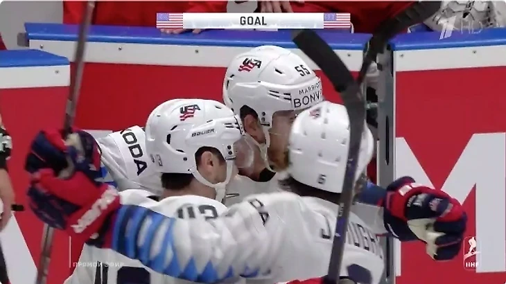 Прежде всего, главным тренерам обеих команд предстояло предугадать, как будут действовать их оппоненты в предстоящей встрече. И в выборе плана на начало встречи явно не прогадал И.П. Воробьёв. Сразу после вбрасывания российская сборная взвинтила темп. Американцы явно не готовились к такому началу. Ожидалось, что Сборная России постепенно будет вкатываться в игру, обрушившись на соперников лишь во втором периоде, как это было в матче со шведами, но «откладывать на потом» в этом матче россияне не стали. Уже на старте второй минуты периода Сборная России провела хорошую атаку, после которой шайба отскочила к вечно поджидающему отскок Никите Гусеву, и тот завёз шайбу в ворота американцев – 1:0!