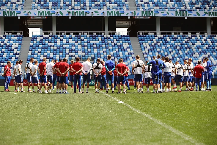 За это время понять план, расстановку команды на завтрашнюю игру практически невозможно. Вратари тренировались отдельно от полевых игроков по своей программе, в то время как основная группа начала с легкой пробежки. Дзюба улыбался и подшучивал над Марио Фернандесом, а Смолов и Зобнин тащили за собой всю группу игроков. После была разминка, разогрев мышц, небольшие микроускорения. По сути это все, что увидели журналисты в эти минуты.