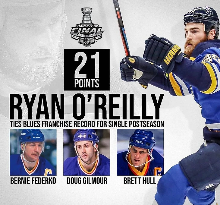 В плей-офф несмотря на отсутствие опыта канадец не сбавил. Последний раз О’Райлли играл в плей-офф пять лет назад в первом сезоне Руа в «Колорадо». Райан отлично себя чувствует в вязкой игре «Сент-Луиса», всегда опасен в атаке и старателен в помощи у своих ворот. У «блюзменов» в каждой серии был новый герой – Биннингтон, Шворц, Тарасенко. В финале им стал О’Райлли. А если взять стабильность по дистанции всего плей-офф, то у канадца нет конкурентов в команде за звание самого ценного игрока. О’Райлли играет много, выходит на лед во всех важных ситуациях, является вторым бомбардиром плей-офф и соавтором рекорда франшизы по результативным баллам за один розыгрыш Кубка Стэнли.