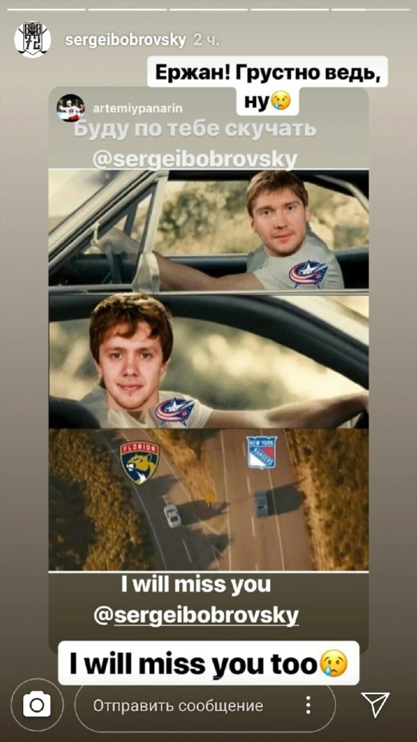 Грустная картинка из сториз в Инстаграме Бобровского: