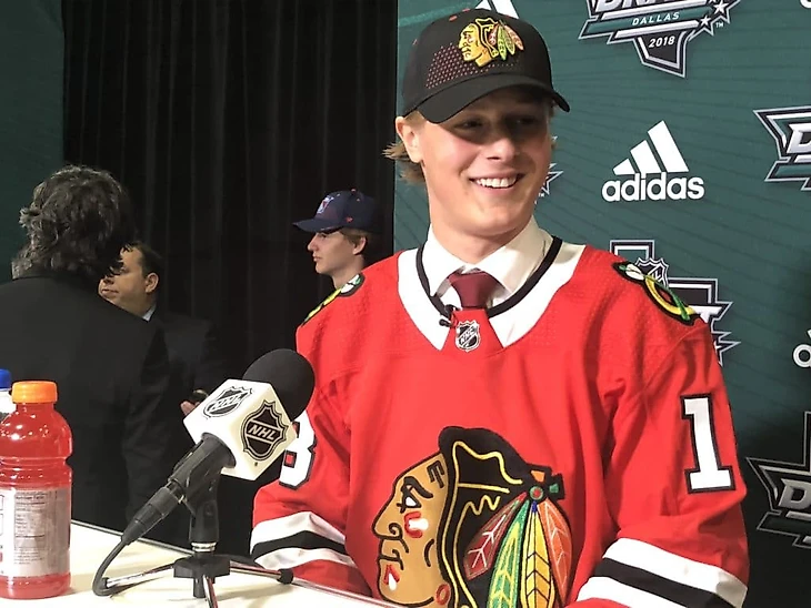 В этом году на драфте менеджментом Чикаго была сделана ставка на мощных игроков .Алекс прошёл подготовку через программу развития национальной команды Сша по хоккею.Хорош в отборе, на неплохом уровне первый пас .