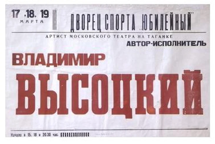 17, 18 и 19 марта 1979. Выступление В. Высоцкого и выступление группы «Красные маки». Концерт состоял из двух отделений: в первом пел В. Высоцкий, во втором «Красные маки». Проводилось по три концерта в день - 15:00, 18:00 и 20:30.
