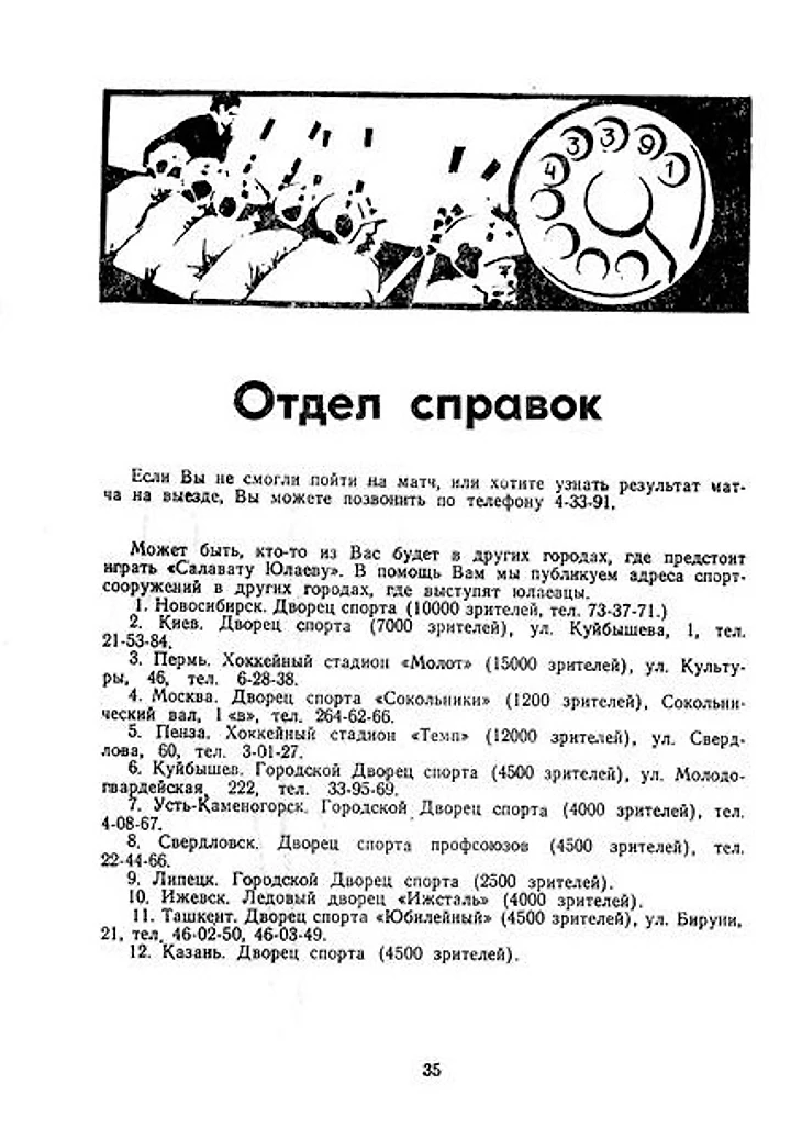 Страница из уфимского календаря-справочника к сезону 1976/77 годов