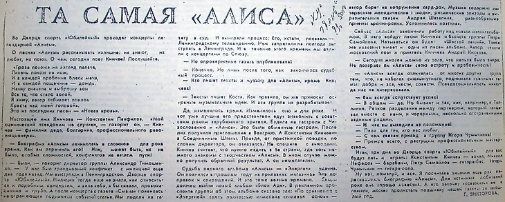 К. Кинчев: «Мы ездили в Ташкент. Прием теплый был, а публики... В Ташкенте зал на четыре тысячи, а билетов продали полторы. С рекламой было никак. Кассы открывали за сорок минут до концерта и продавали билеты только на этот концерт.»