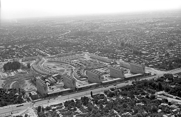 1973. Жилой квартал Ташкента, спроектированный в институте «Ташгипрогор», на первом плане улица Беруни (Алексей Варфоломеев / Библиотека изображений «РИА Новости»)