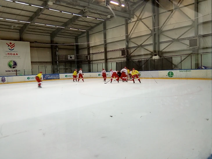 Тренировка проходила в режиме карусели. Одна группа занималась в игровом зале, где были упражнения на растяжку, координацию, а также ребята играли в игровые виды спорта: баскетбол и гандбол. Вторая группа в это время проливала пот в тренажерном зале. А третья уже выходила на лед, и играла двухсторонку без силовых приемов, зато с большим количеством положительных эмоций! Да и спортивный азарт присутствовал, ведь проигравшая сторона получала дополнительную нагрузку в виде приседаний, а их количество зависело от разницы в счете.