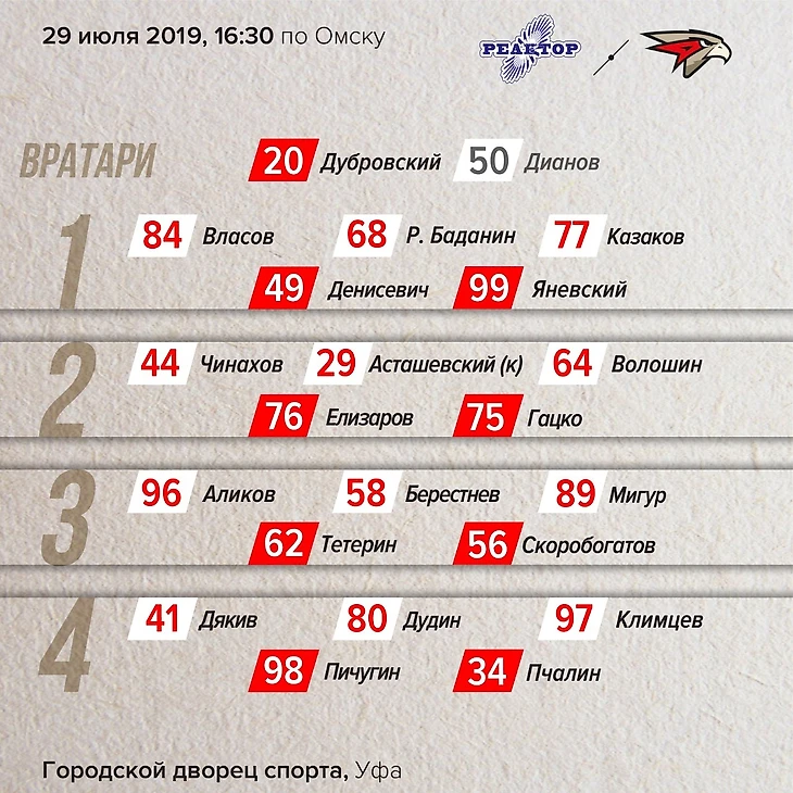На свой первый матч этого лета команда из Омска вышла в следующем составе.