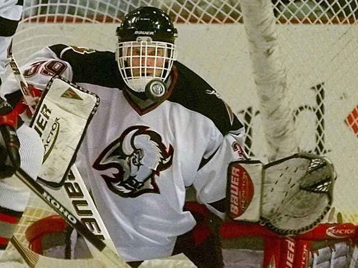 Наверное, ни одна команда не строила игру вокруг вратаря, как Баффало конца 90-х начала 2000-х. Показательна статистика сезона 1997/1998 - по воротам "клинков" нанесли наибольшее количество бросков среди всех команд! Соотношение бросков по чужим/по своим воротам было худшим среди всех команд (в среднем почти "-5", разница). Добавьте к этому, что лучший бомбардир команды Шатан, был только 85-м в контексте всей лиги! Так что "Доминатор" был больше чем полкоманды.