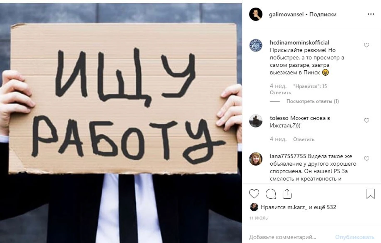 - Не так давно ты выложил пост в своём Инстаграм-аккаунте о том, что ты ищешь работу. Расскажи, как тебе пришла эта идея? Ведь есть люди, которые восприняли твоё обращение всерьёз.