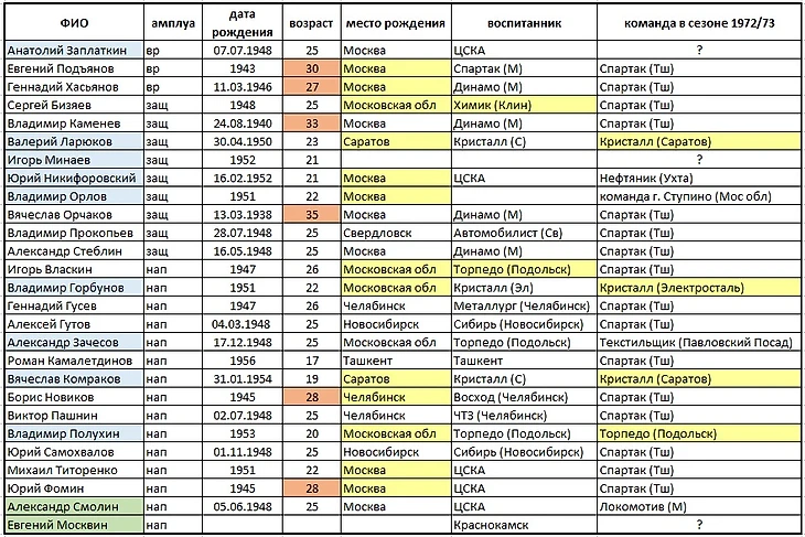 После того, как вторым тренером стал Валентин Григорьев, поигравший в свое время в Саратове, в команде стали появляться игроки и оттуда, но большинство по прежнему было из Москвы и области.