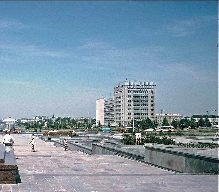 1986. Вариант фото от художественно-исторического альманаха «Письма о Ташкенте» (mytashkent.uz). Новое здание цирка построено в 1976 году, а одним из его архитекторов является Г.М.Александрович, тот что возглавлял авторский коллектив проектировщиков ЦЗС «Юбилейный»