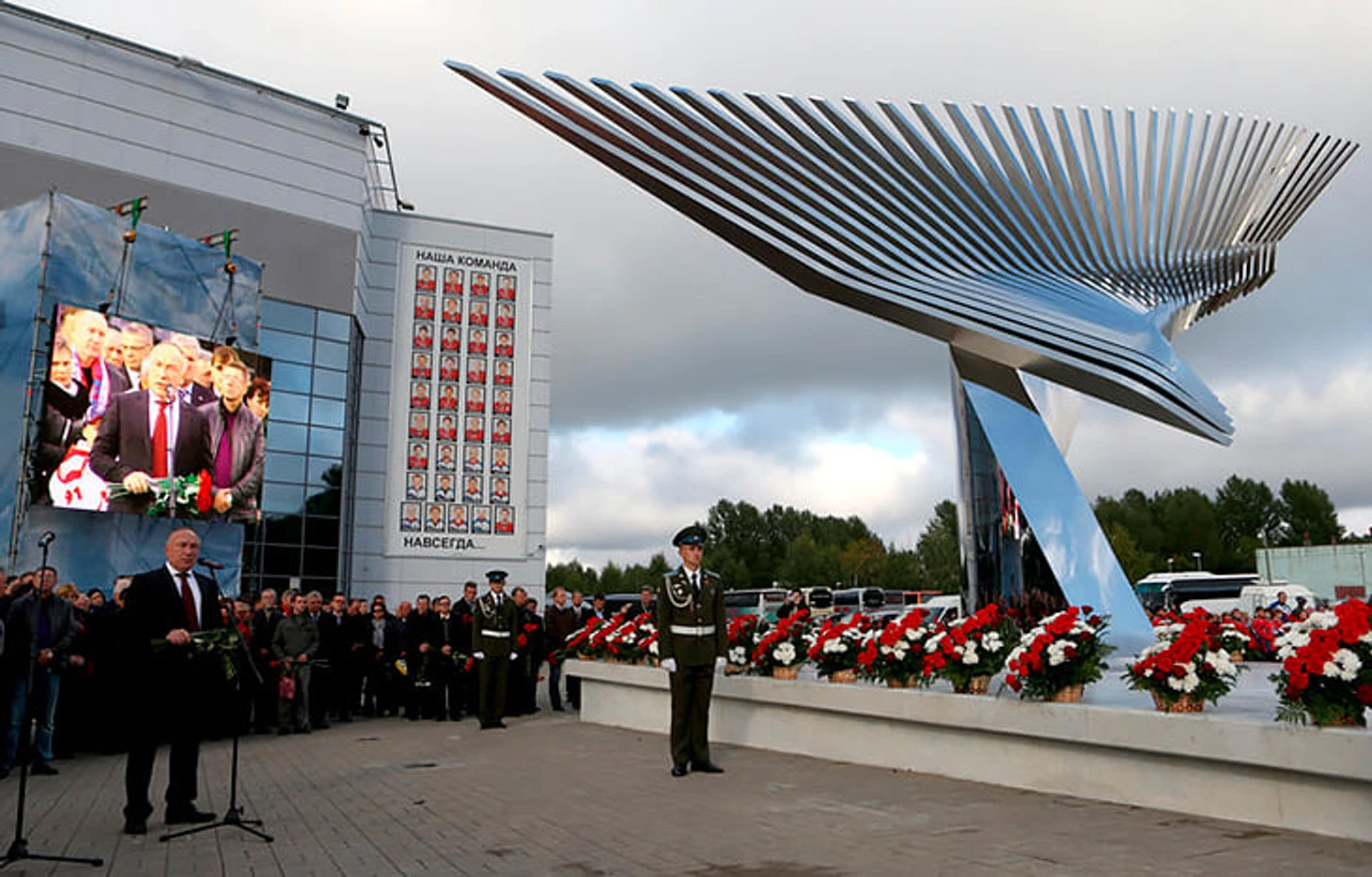 Перед входом в «Арену-2000» установлен монумент «Хоккейное братство» в честь погибших, а также мемориал с портретами игроков, тренеров и персонала.