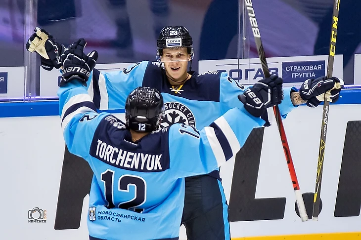 Что можно сказать по голам, забитым игроками Сибири. Два от синей, один – из ситуации, когда ещё 100 раз бросит и ни разу не залетит, один в контратаке и один после классного подставления под шайбу, пущенную также от синей линии.  Ничего комбинационного и заумного, всё просто. Вообще, сибиряки пока не особо активно используют игру в пас, всё больше полагаясь на броски от синей линии и индивидуальные действия. Пожалуй, единственное исключение – это Миловзоров. Когда Егор появлялся на льду, игра команды приобретала более осмысленный вид, просматривались зачатки комбинационной игры. Особенно это было заметно в большинстве.