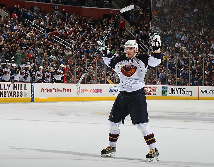 Чем запомнился: Козлов пришел в «Атланту» уже настоящим ветераном после десятка очень успешных сезонов в «Детройте», но ни разу не дал усомниться в том, что он пришел не доигрывать. На протяжении 6 из 7 сезонов в клубе он неизменно входил в число лучших бомбардиров команды и был одним из самых стабильных игроков «Трэшерз» нулевых. Основная угроза от Славы всегда исходила при игре в большинстве, где он исполнял роль главного разыгрывающего. Примерно тем же сейчас занимается Блэйк Уилер при реализации лишнего. В неравных составах Козлов отдал 130 голевых передач и этот показатель Уилер перекрыл только лишь в конце прошлого сезона.