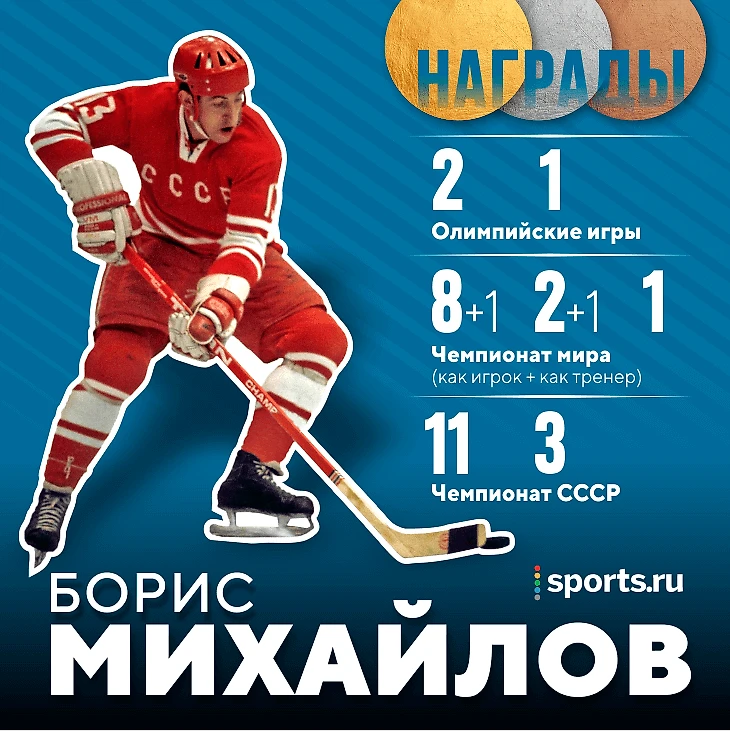 Плюс – Михайлов был капитаном ЦСКА и сборной. Плюс – брал на себя всю грязную и тяжелую работу в звене с Харламовым. Плюс – два олимпийских золота, 8 золотых медалей чемпионатов мира. Совершенно реальная и бесспорная легенда.