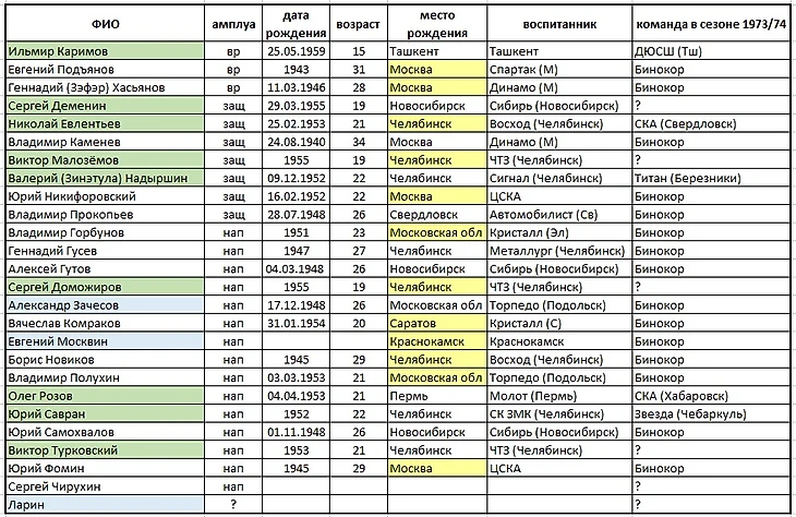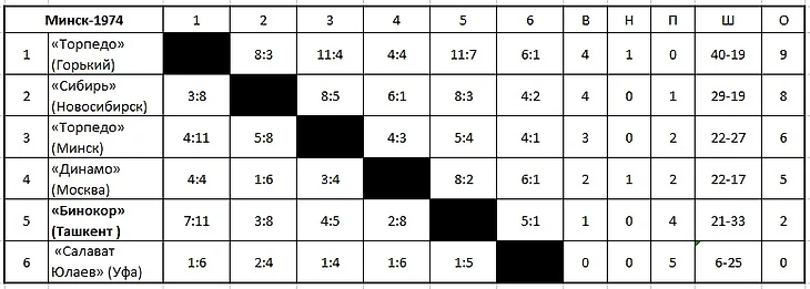 22.09.1974. 1 500 зрителей. «Бинокор» (Ташкент) - «Торпедо» (Минск) - 4:5 (1:2, 2:1, 1:2)