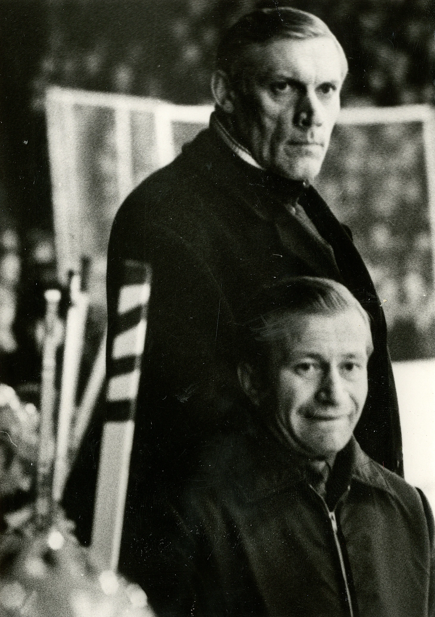 В.И. Столяров с помощником следят за игрой «Трактора»