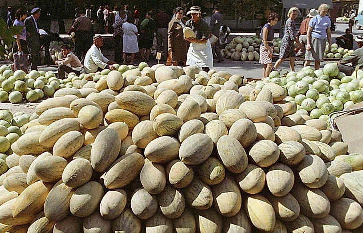 1974. Ташкент. Дыни на колхозном базаре (Валерий Шустов / Библиотека изображений «РИА Новости»)