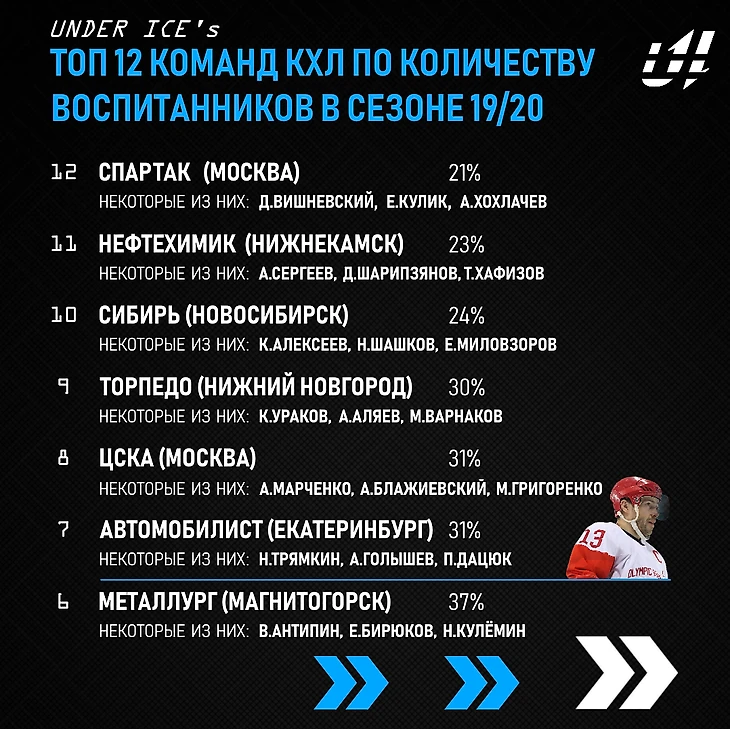 Примечание: Возьмем за основу пункт из футбола о воспитанниках из правил UEFA с небольшими правками: Хоккеист считается собственным воспитанником клуба (по версии Under Ice), если был зарегистрирован как его игрок в течение как минимум трех сезонов в возрасте от 15 до 20 лет.