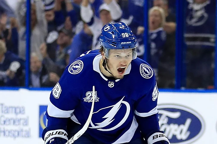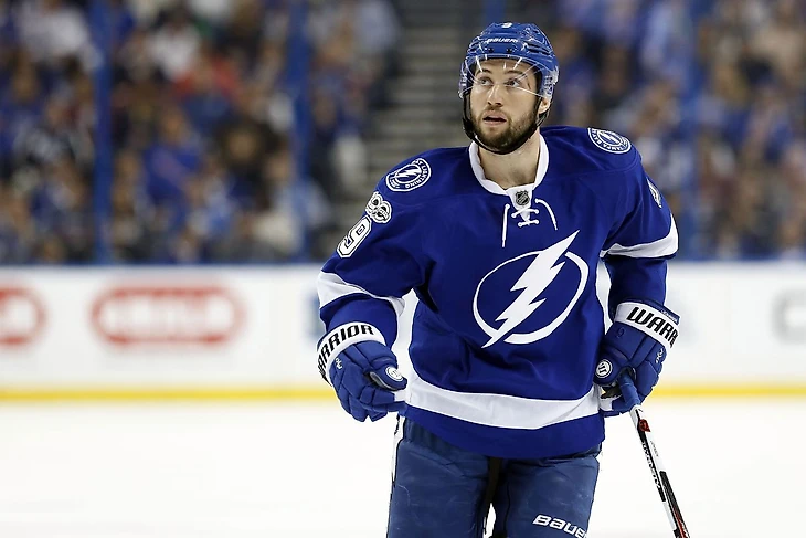 Теперь у нас осталась третья тройка и 3.600 баллов на счету. Здесь уже можно разгуляться. Покупаем за 1.500 очков центра первого звена «Тампы» Тайлера Джонсона. Игра с Никитой Кучеровым просто обязывает его регулярно набирать очки, да и сам Джонсон – не промах. В том году по системе «гол+пас» у него было 47 баллов, в этом надеемся на повышение.