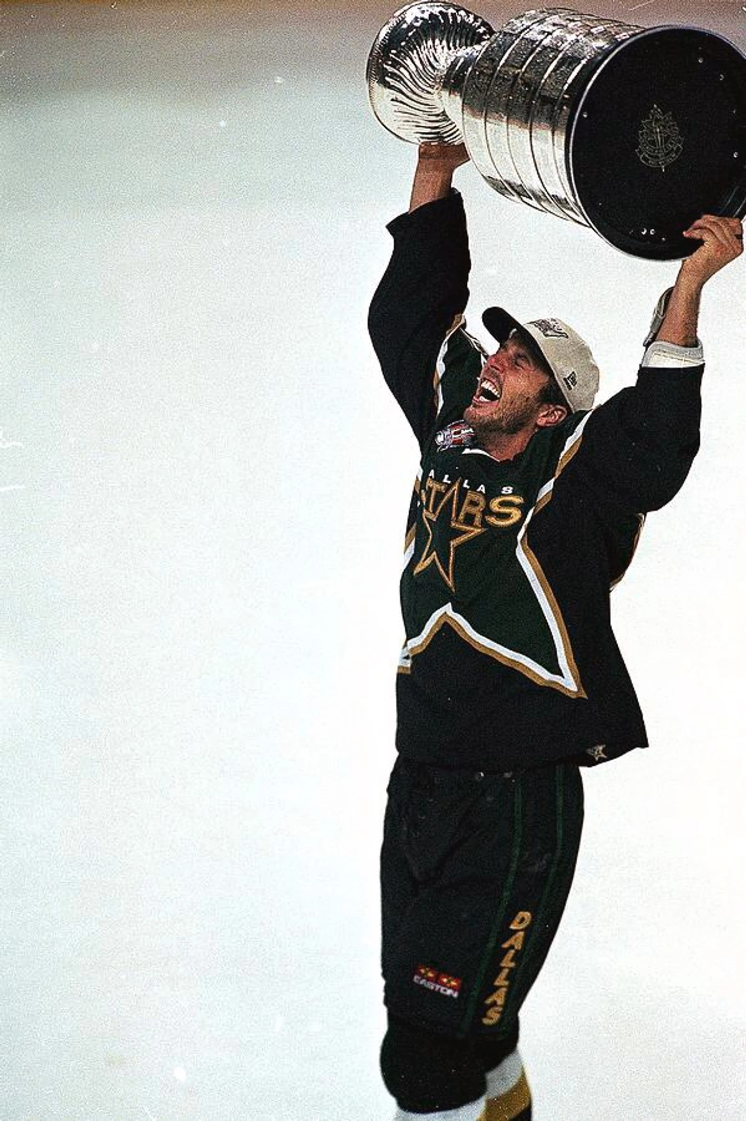 Капитан «Далласа» с заветным Кубом Стэнли. Хэтчер, стал первым капитаном американцем, который привел свою команду к победе в Кубке Стэнли.