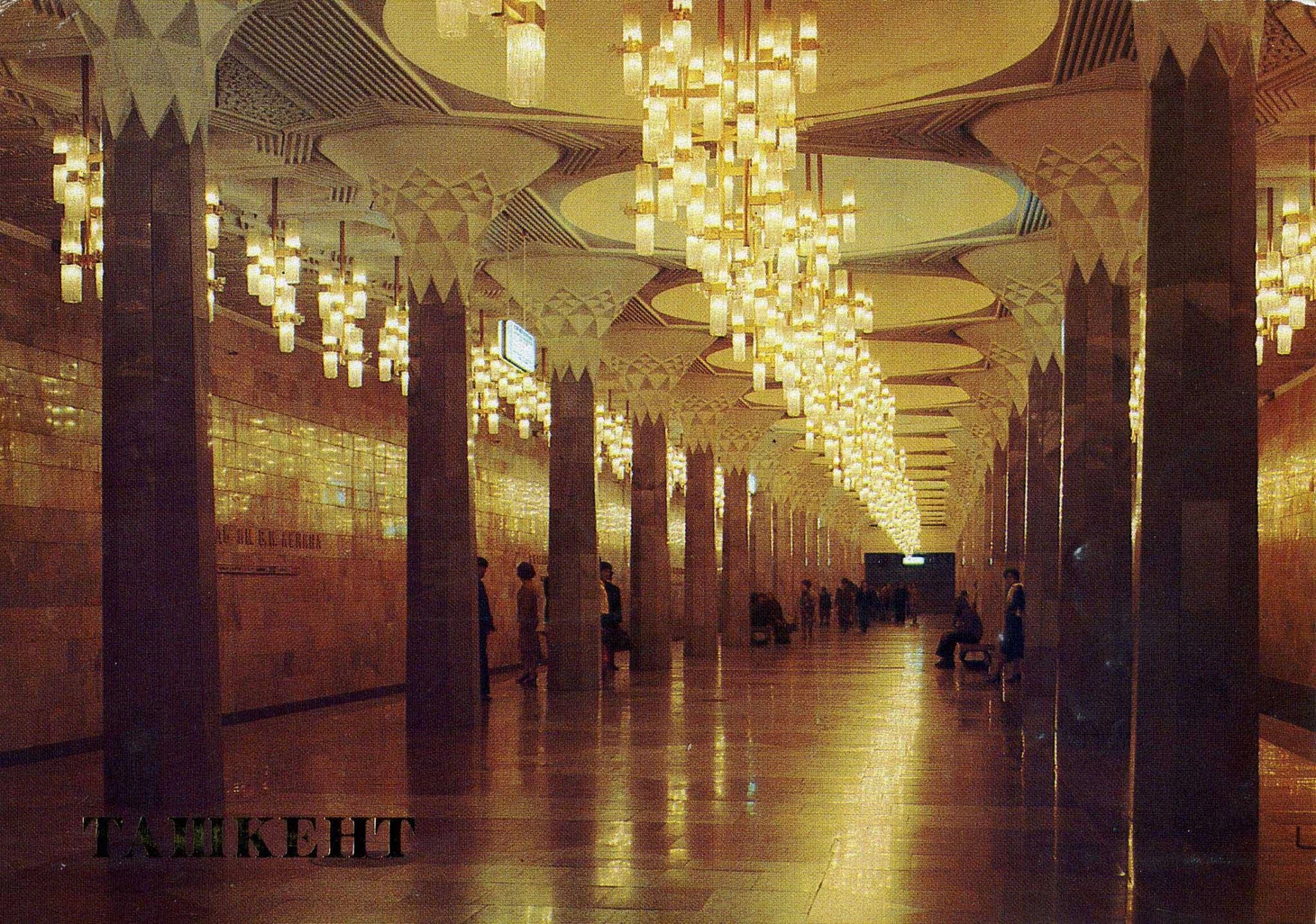 Ташкент. Станция метро «Площадь имени В.И.Ленина». Из набора открыток «Ташкент» издательства «Плакат» (1988)