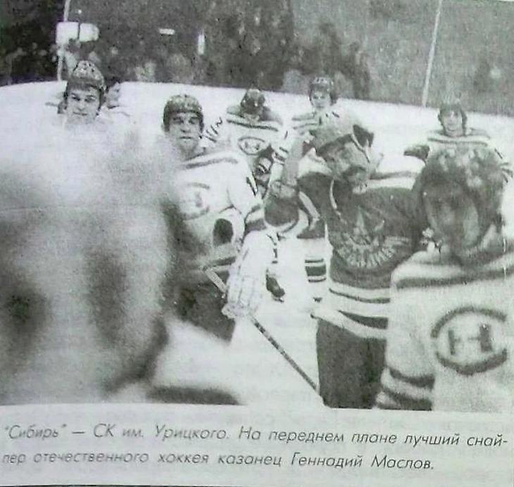 «Сибирь» - СК им. Урицкого. Возможно, что и это снимок относится к сезону 1976/77 годов (фото из книги «Дорога длинною 50 хоккейный лет» (составители Г. Зырянов и А. Никонов, издательский дом «Молодость Сибири», Новосибирск, 1999)