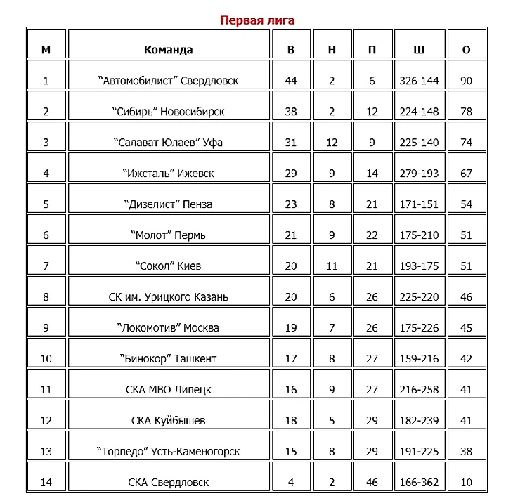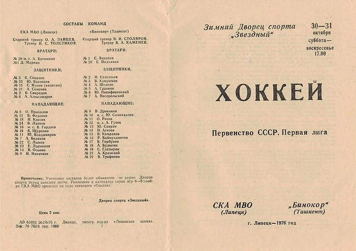 12.09.1976. «Бинокор» (Ташкент) - «Молот» (Пермь) -1:5 (0:2,0:0,1:3).