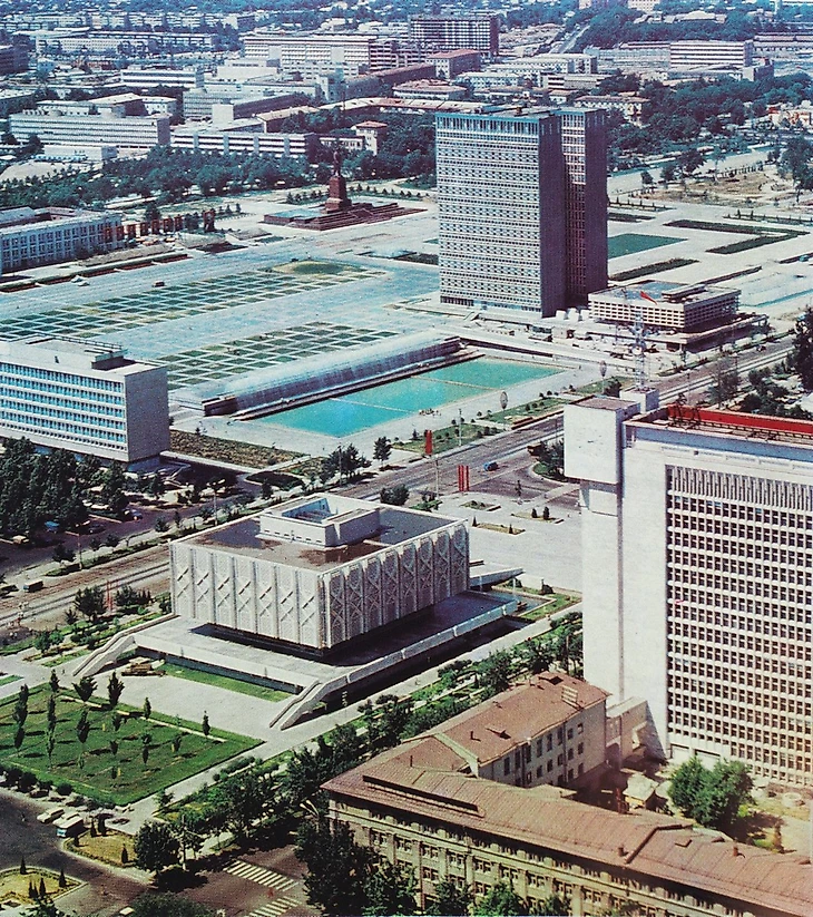 Середина семидесятых. Панорама центра Ташкента из фотоальбома «Советский Узбекистан» изданного в 1978 году (подписан в печать в июне 1977)