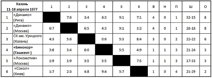16.04.1977. «Сокол» (Киев) - «Бинокор» (Ташкент) - 9:4 (1:1,3:0,5:3).