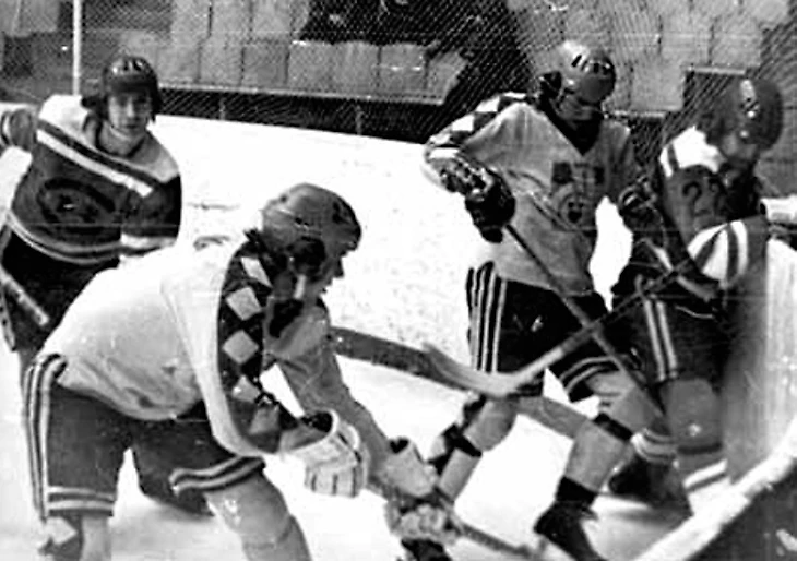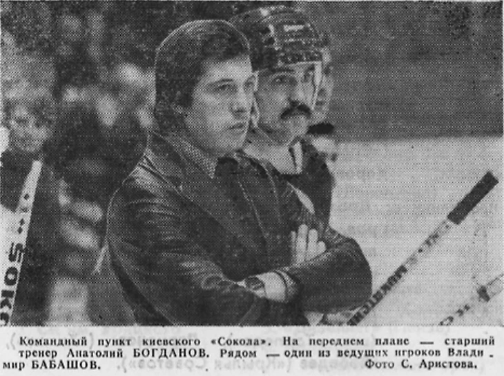 Игрой челябинского «Металлург» руководит П.В. Дубровин. Петр Васильевич мог сменить Г.И. Андрианова и оказаться в Ташкенте вместо В.И. Столярова, но от приглашения отказался. Не поехал он и в Минск, и в Уфу. Его воспитанники - семь человек - принимали участие в девяти Олимпийских играх (с 1976 по 2010 год), а пятеро из них стали олимпийскими чемпионами (С. Бабинов, С. Макаров, С. Стариков, С .Мыльников, В Быков). Стоит - А. Сидоренко (будущий главный тренер сборных Белоруссии и Польши)
