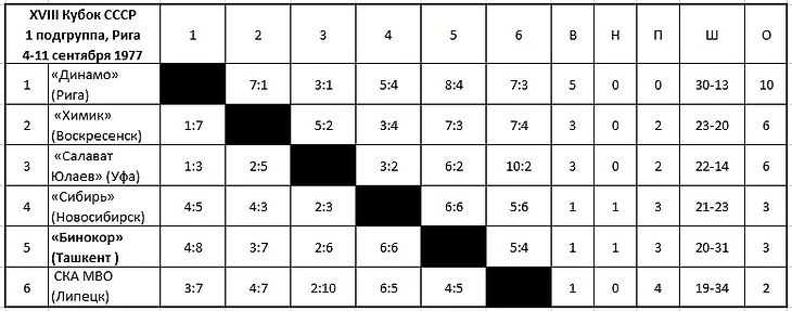09.09.1977. «Динамо» (Рига) - «Бинокор» (Ташкент) - 8:4 (2:1, 1:1, 5:2).