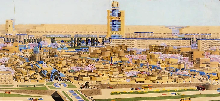 1974-78. Ташкент. Проект микрорайона Калькауз (архитекторы: Андрей Косинский и Геннадий Коробовцев) Московский архитектор, работавший в Ташкенте, Андрей Косинский попытался модернизировать архитектурную среду Старого города, не разрушая, а, напротив, давая новую жизнь такому социальному институту как махалля (это традиционное квартальное сообщество среднеазиатских городов, не утратившее своей социальной роли и при советской власти, регулировавшее многие стороны жизни входивших в нее семей). «Коммунистическая махалля» располагалась Косинским в высотных комплексах, на нескольких ярусах которых были предусмотрены общие пространства. Они, однако, принадлежали не всему обществу подобно дворам рядовых советских микрорайонов, а лишь членам конкретного сообщества, проживающего в комплексе. Проект Калькауза довольно быстро был положен на полку.