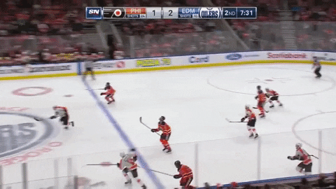 Техническая деталь: вот то, как Макдэвид бежит в первой половинке гифки сверху в хоккее называется «перебежка» – движение в сторону серией, внимание, переступаний. Куинн говорил, что в среднем игрок НХЛ делает переступание каждые 12-14 шагов, а топ-игроки – через три-четыре толчка. А у Макдэвида бывают переступания через каждый шаг.