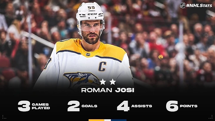 Благодаря 6-ти очкам капитана, «Нэшвилл» закончили эту неделю без единого поражения. У Йоси гол+пас против «Анахайма», передача на победную шайбу Саломаки в матче против «Миннесоты», и прямое участие во всех голах в игре с «Тампой». В первом периоде швейцарец вывел на бросок Йернкрука в большинстве, в третьем - сам реализовал лишнего щелчком с синей линии, а в овертайме отдал на свободного Эллиса, который не промахнулся с убойной позиции. С 13-ю очками Йоси второй бомбардир среди защитников, а его пара с Эллисом, у которого тоже 13 очков - 2+11 - стала первой, где оба защитника за 11 матчей набрали 13 очков, с сезона 1992-93. Тогда это была пара Улофссон - Хаусли (бывший главный тренер «Баффало») из «Виннипега».