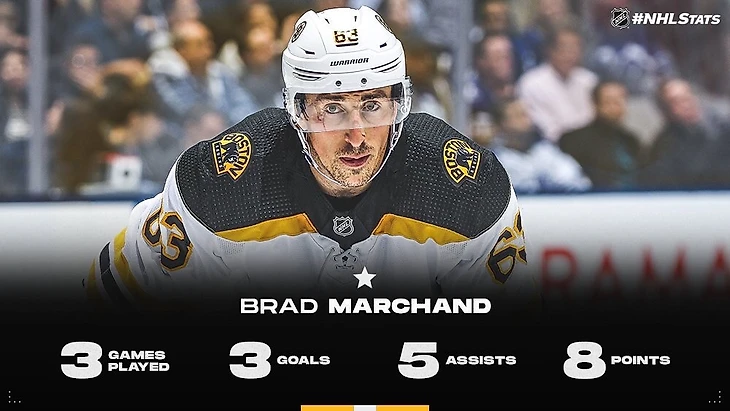 Первая звезда - Бред Маршанд, «Бостон» - 3 игры, 3+5, «+7»
