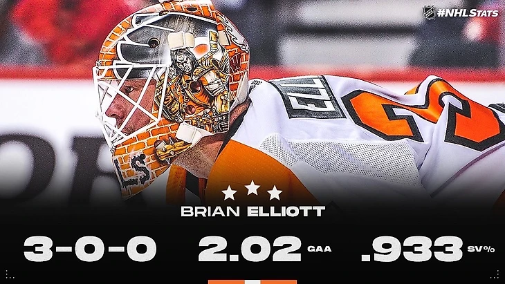 Третья звезда - Брайан Эллиот, «Филадельфия» - 4 игры, 2.02, 93.3%, 3-0-0