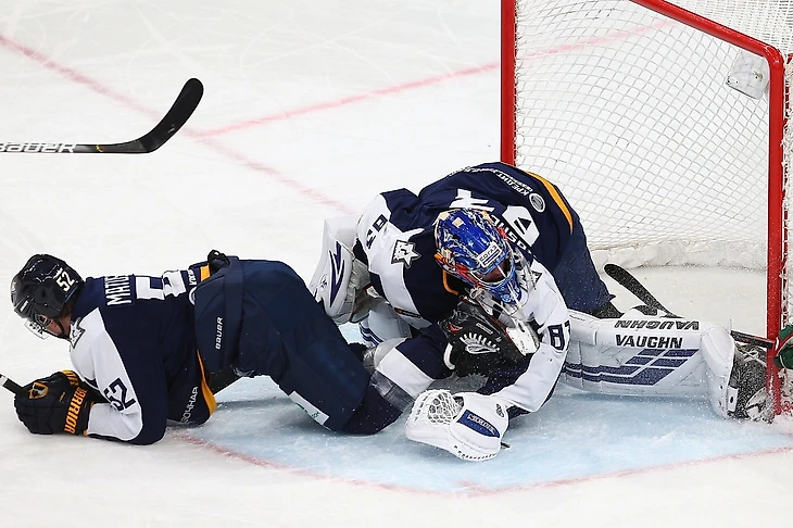 Основное время матча и овертайм закончились со счетом 0:0. В серии буллитов победил «Металлург» – но Кошечкину не запишут этот шатаут как раз из-за 1 минуты 28 секунд, пока ему заклеивали порез на шее.