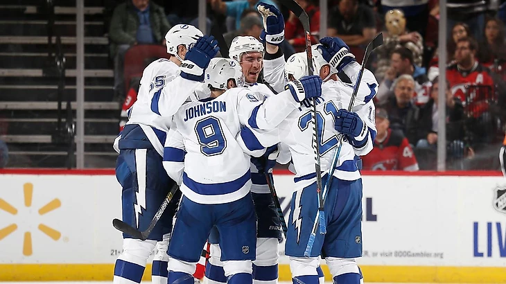 "Нью-Джерси Дэвилз"-"Тампа-Бэй Лайтнинг" 6:7 (ОТ).Тайлер Джонсон в овертайме принёс победу гостям.Ондржей Палат набрал 3 очка (2+1),Тайлер Джонсон и Брейден Пойнт также набрали по 3 очка (1+2),Мэттью Джозеф и Энтони Чирелли набрали по 2 очка (1+1),Кевин Шаттенкирк отдал 2 результативные передачи,Михаил Сергачёв отдал результативную передачу,Кертис Макелинни отразил 36 бросков.У гозяев Кайл Палмьери забросил 3 шайбы,Уэйн Симмондс отдал 3 результативные передачи,Йеспер Братт забросил 2 шайбы,Тэйлор Холл с Нико Хиширом и Уиллом Бутчером отдали по 2 результативные передачи.
