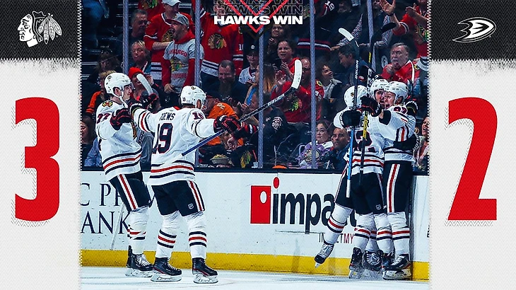 "Анахайм Дакс"-"Чикаго Блэк Хоукс" 2:3 (ОТ).Патрик Кейн в овертайме принёс победу гостям.Патрик Кейн набрал 2 очка (1+1),Джонатан Тэйвз отдал 2 результативные передачи,Робин Ленер отразил 36 бросков.У хозяев Сэм Стил отдал 2 результативные передачи.