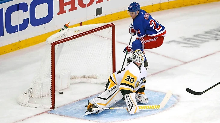 "Нью-Йорк Рейнджерс"-"Питтсбург Пингвинз" 3:2 (ОТ).Каапо Какко в овертайме принёс победу хозяевам.Каапо Какко забросил 2 шайбы,Адам Фокс набрал 2 очка (1+1),Артемий Панарин отдал результативную передачу,Александр Георгиев отразил 30 бросков.У гостей Евгений Малкин отдал результативную передачу.